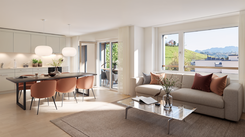 Machen Sie einen virtuellen Rundgang durch die 2.5 bis 4.5 Zimmerwohnungen oder buchen Sie Ihre Besichtigung.